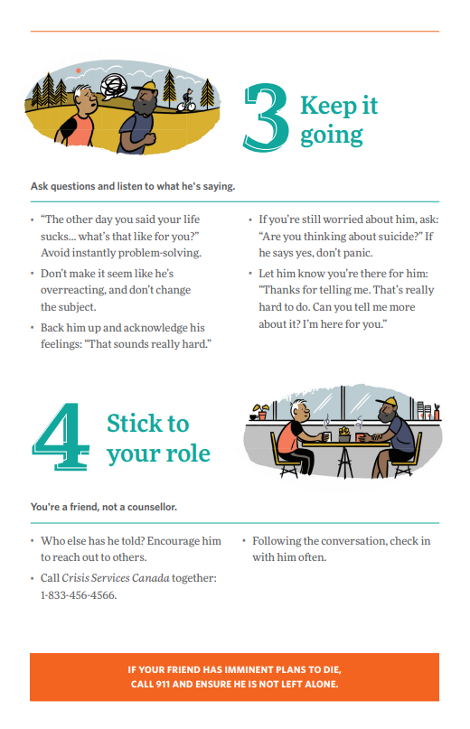 If you know someone who is thinking about suicide, or if you’re thinking about suicide, call your local crisis line. In Canada, call 1-833-456-4566.